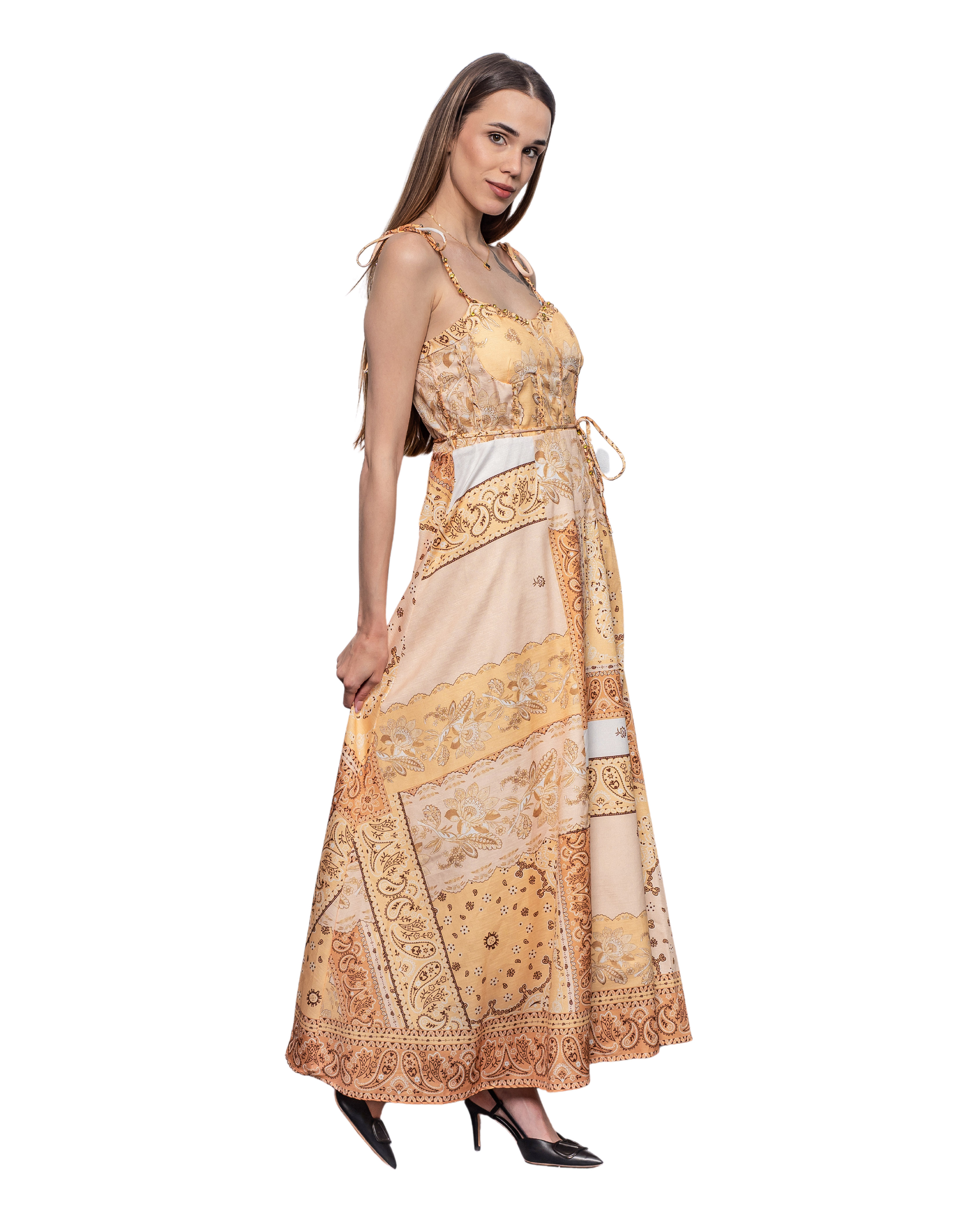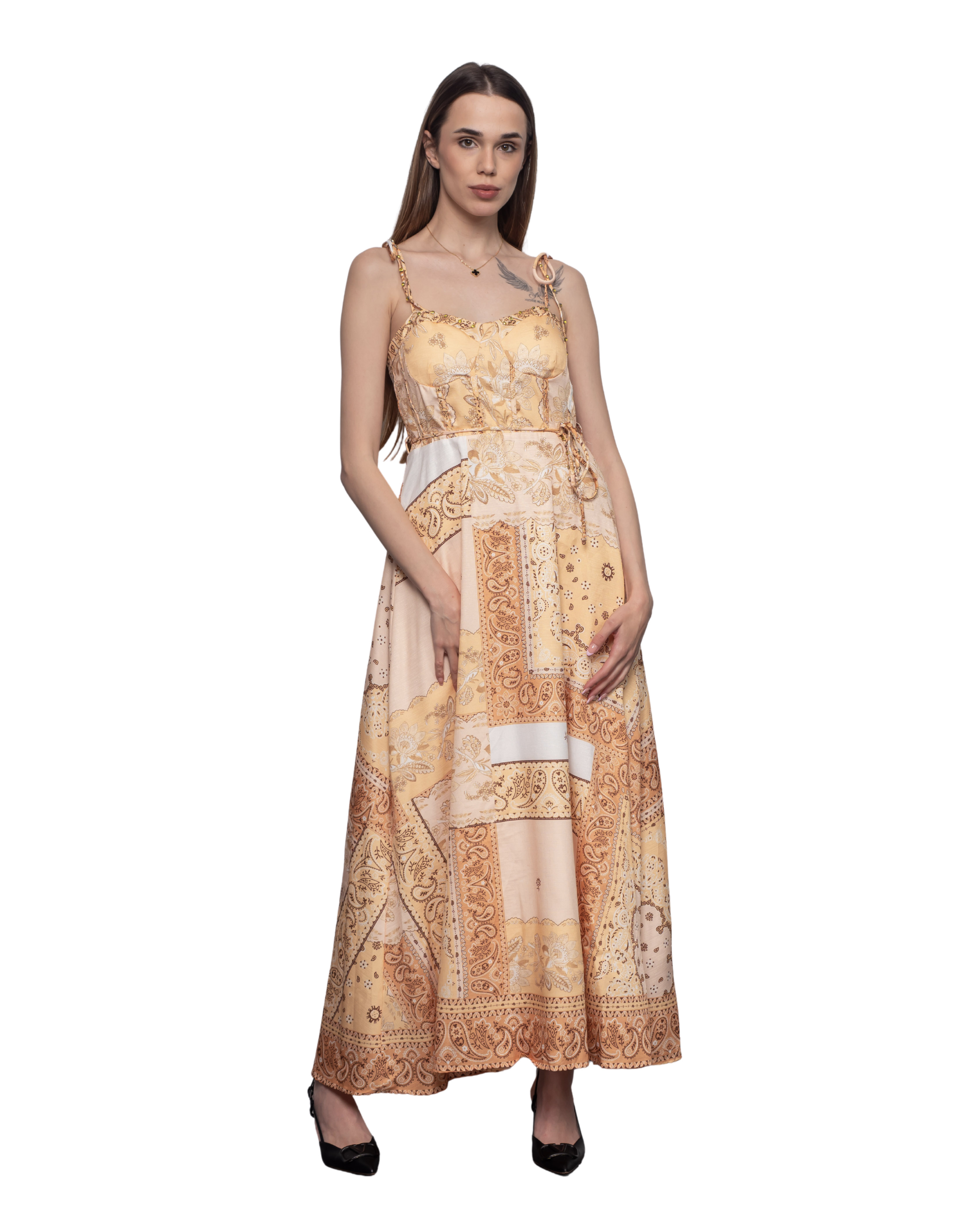 Дамска златна рокля орнаменти